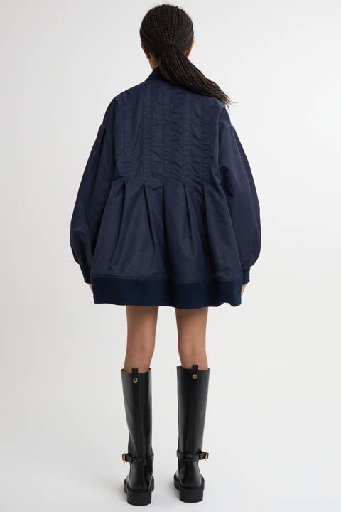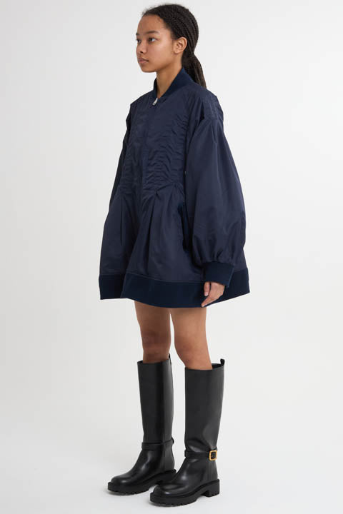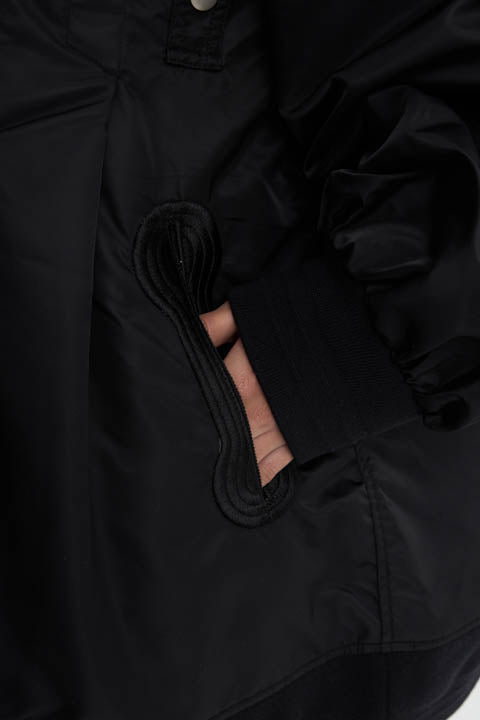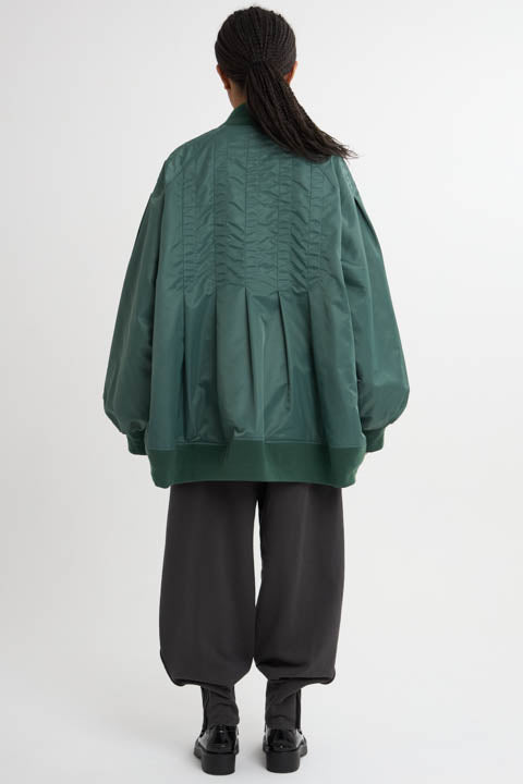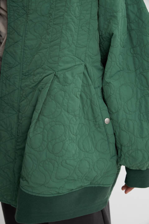MEGMIURAのベストセラー、MA-01。今シーズンは、ミリタリーからのインスピレーションを受け、表にナイロンサテン素材、裏側にオリジナルのLeaf柄ステッチがほどこし、中綿は薄手機能綿である、サーモライトを使用。秋から春真冬にかけて活躍するジャケットにアップデートしました。ポケット部分はシグネチャーとも言えるオリジナル刺繍ポケット。装飾と機能性を兼ね備えています。