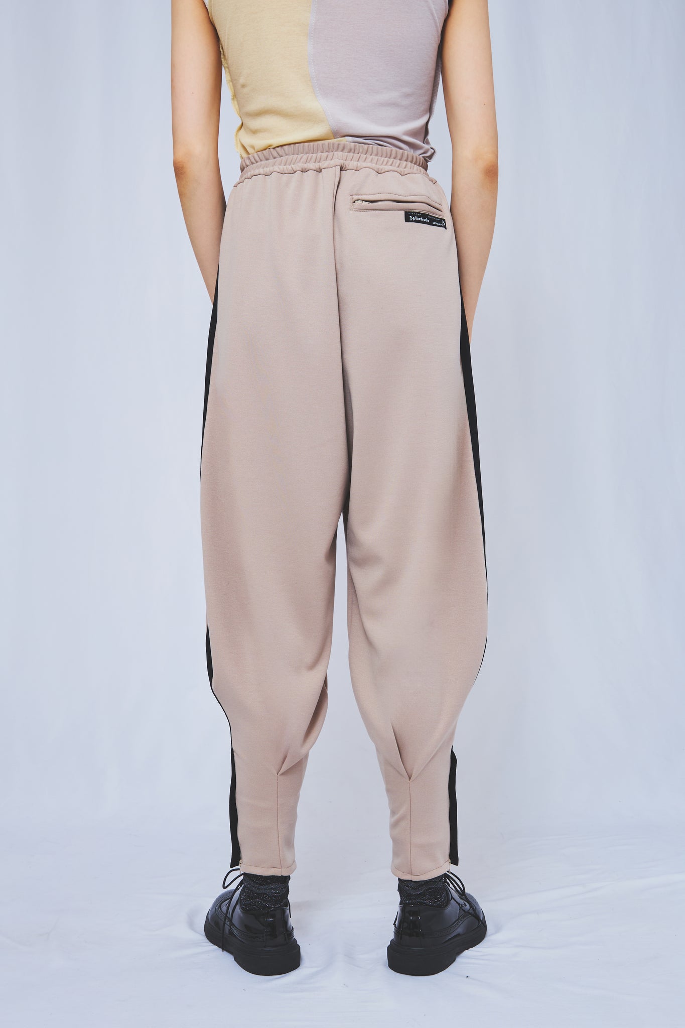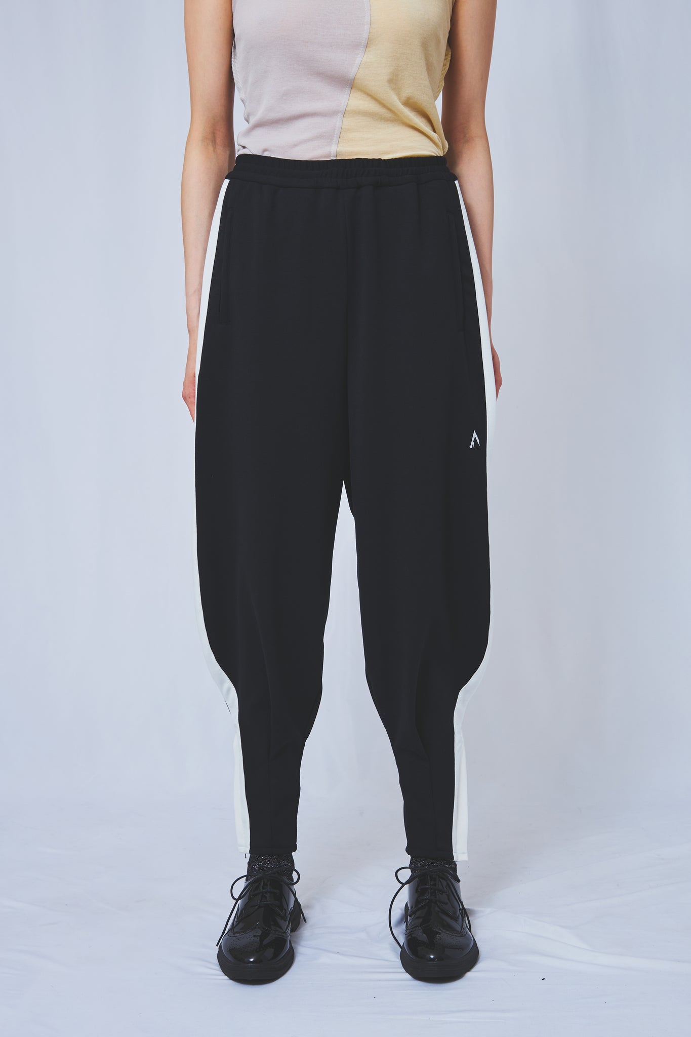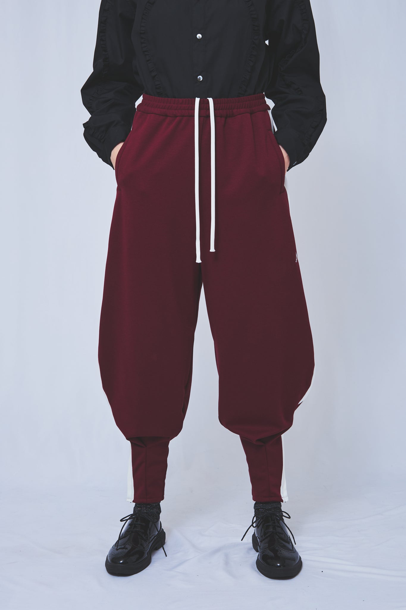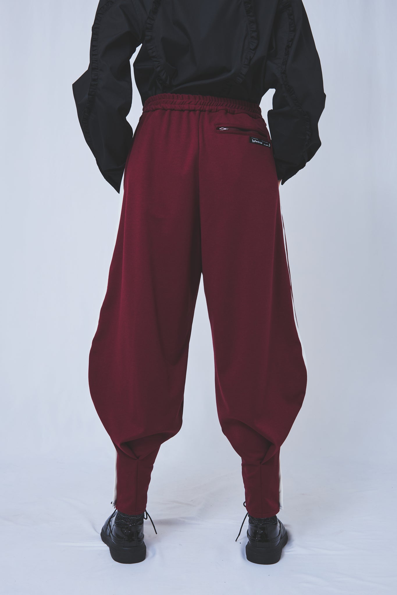 ユニフォームのアイコンであるボンタンパンツを、ドレスパンツからインスパイアされたカッティングでアップデートしました。 裾はファスナーで開閉可能で、ファスナーを開けた履き方もおすすめです。スエット素材のため、履きやすいのが特徴です。 ウエスト内側には紐があり、ウエスト寸法を調節可能です。スニーカーだけでなく、革ブーツとも相性抜群です。