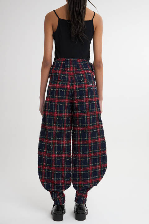 The Scratch Tartan Check Bontan Pants update the iconic Japanese bontan silhouette with refined tailoring inspired by dress trousers.