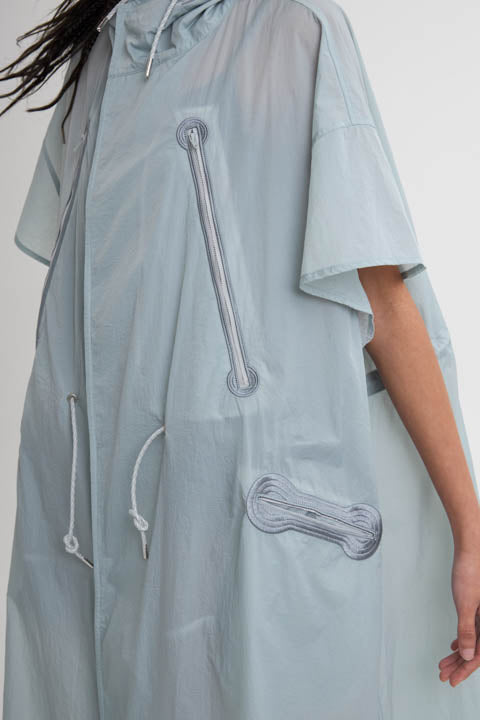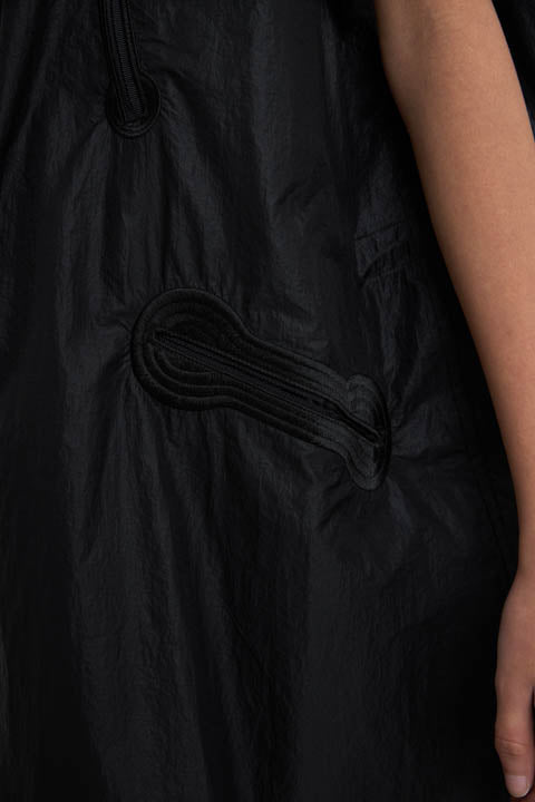 MEGMIURA WARDROBE’s signature embroidered pocket adds a refined detail that blends decoration with functionality. A unique layering piece that balances protection, lightness, and modern design.