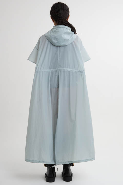 The UV Cut Long Cape is crafted from lightweight nylon with both water-repellent and UV protection functions, making it a highly practical yet elegant outerwear piece. Its flowing silhouette allows it to be worn like a dress or long coat, offering versatility across seasons.